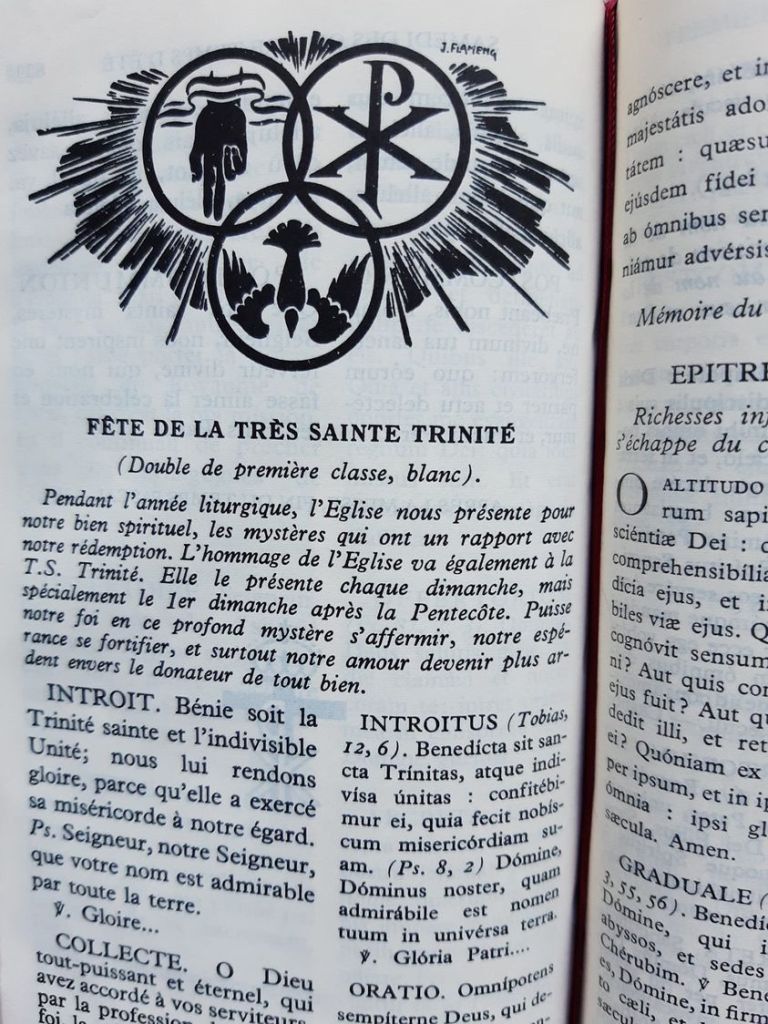 Dom Guéranger nous explique : « Tous les hommages que la Liturgie rend à Dieu ont pour objet la divine Trinité. Les temps sont à elle comme l’éternité ; elle est le dernier terme de notre religion tout entière. Chaque jour, chaque heure lui appartiennent. Les fêtes instituées en commémoration des mystères de notre salut aboutissent toujours à elle. Celles de la très sainte Vierge et des Saints sont autant de moyens qui nous conduisent à la glorification du Seigneur unique en essence et triple en personnes. Quant à l’Office divin du Dimanche en particulier, il fournit chaque semaine l’expression spécialement formulée de l’adoration et du service envers ce mystère, fondement de tous les autres et source de toute grâce. On comprend dès lors comment il se fait que l’Église ait tardé si longtemps d’instituer une fête spéciale en l’honneur de la sainte Trinité. La raison ordinaire de l’institution des fêtes manquait ici totalement. Une fête est le monument d’un fait qui s’est accompli dans le temps, et dont il est à propos de perpétuer le souvenir et l’influence : or, de toute éternité, avant toute création, Dieu vit et règne, Père, Fils et Saint-Esprit. Cette institution ne pouvait donc consister qu’à établir sur le Cycle un jour particulier où les chrétiens s’uniraient d’une manière en quelque sorte plus directe dans la glorification solennelle du mystère de l’unité et de la trinité dans une même nature divine » .