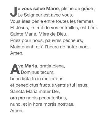 Je te salue Marie, pleine de grâce, le Seigneur est avec toi…