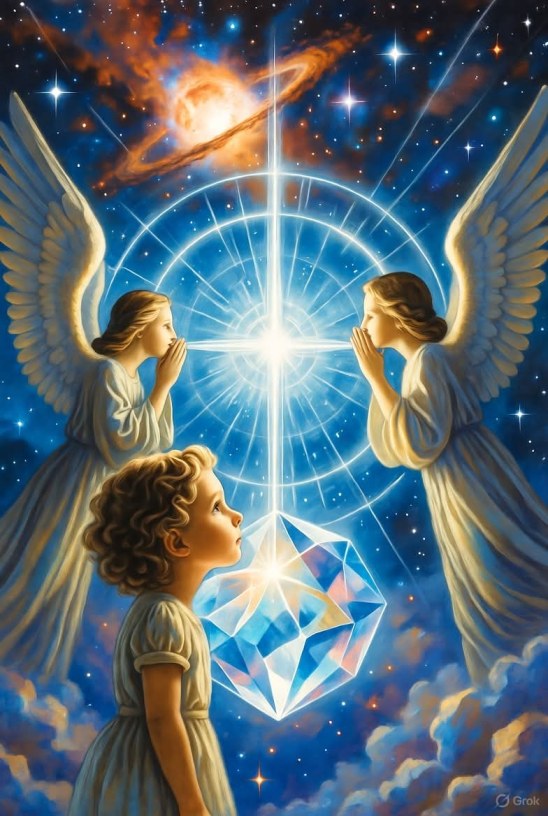 Puisque nous avons l’Arcane de la Faille, qui est le Canal de la Lumière, l’étape suivante est de nommer la Lumière elle-même et de l’ancrer dans la tradition que vous évoquez : le Christianisme Catholique, l’Ange, la Nature, et l’analyse du Silicium (la pierre).