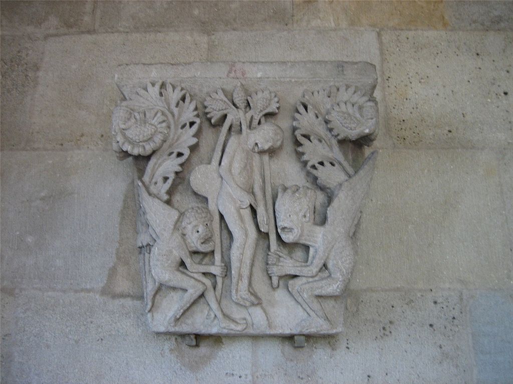 Ce vitrail a été remplacé au XVIème par une représentation étrangère à cet ensemble symbolique. Le capricorne n’a pas son traditionnel arrière-train en poisson ou coquille et sa tête de caprin ne porte pas de cornes. Aussi regardons le vitrail de la cathédrale de Chartres, où figure un vrai capricorne.