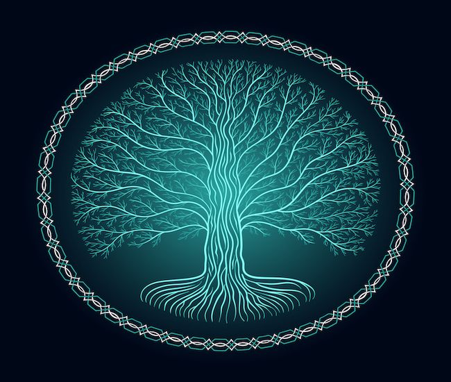 Yggdrasil, l’Arbre cosmique de la théogonie païenne, symbole de l’esprit universel du Divin qui imprègne toute la substance du cosmos. https://fr.m.wikipedia.org/wiki/Yggdrasil