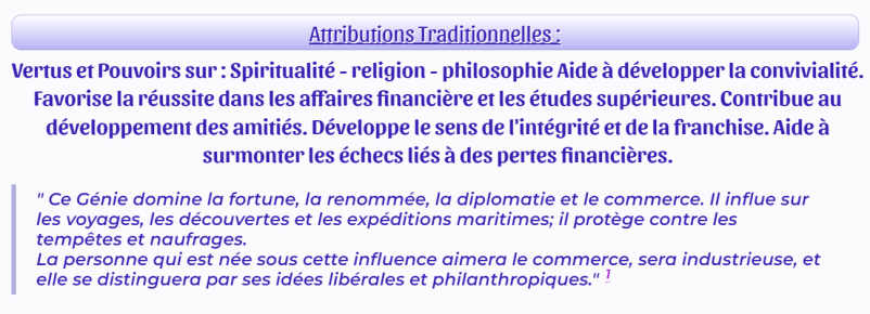 Les énergies que dispense Yeiayel sont: l’Intelligence Pratique (Saturne) + la Beauté, l’Amour, le Corps sain, le Détail (Vénus).
