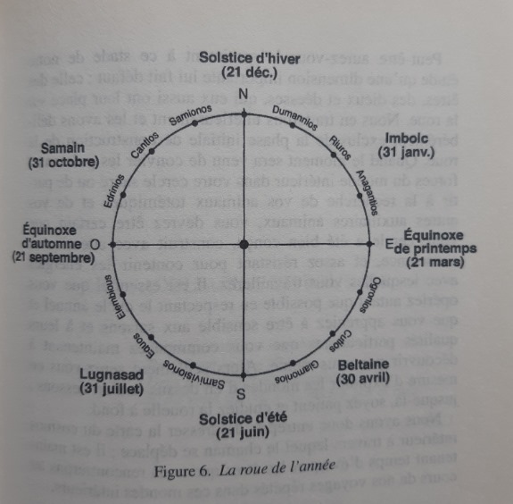 Après vous être ainsi préparé, arrangez les pierres avec soin, en étant conscient de ce que vous accomplissez.Le moment est maintenant venu de disposer les huit pierres restantes, qui représentent les huit moins solaires et lunaires.Commencez par Samionos (la chute de la graine), puis Dumanios (les profondeurs de l’obscurité), Riuros (le temps des frimas), Anagantios (le temps où l’on reste chez soi), Ogronios (le temps des glaces), Cutios (le temps venteux), Giamonos (l’apparition des pousses), Samivisionos (le temps de la clarté), Equos (le temps des chevaux), Elembiuos (le temps de revendications), Edrinios (le temps des arbitrages), Cantlos (le temps des chansons). Disposez le pierres à intervalles réguliers comme indiqué sur la figure 2, et ce faisant, considérez les qualités particulières à chaque mois, les êtres qui lui sont associés et toutes les dimensions que vous lui avez attribuées (tant que le résulta ne sera pas conforme à votre propre schéma, utiliser les éléments fournis par la figure 1)