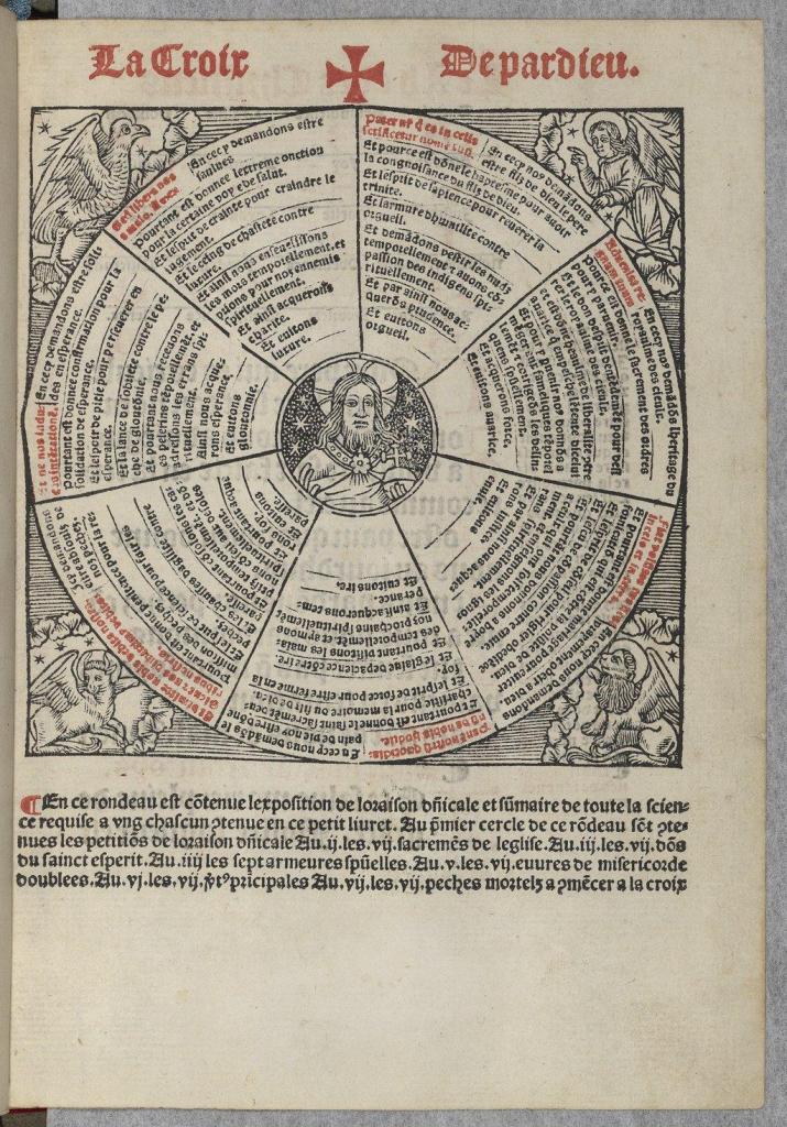 La quaternité est l’élément dominant des visions. Elle est déterminée par rapport au centre où se trouve le trône – feu – lumière. La quaternité est vivante ; elle est la vie. La croix est symbole de ce quaternaire. En effet, la caractéristique de la croix c’est d’être une figurée centrée. Elle est l’intermédiaire entre le carré et le cercle (Voir la croix pattée des Templiers, ainsi que la croix zodiacale avec les points cardinaux, les solstices et les équinoxes). Le tétramorphe est figuré sur les tympans romans en amande avec le Christ au centre. Cette figuration reçoit toute sa signification que par cette présence au centre. C’est en effet Lui qui les anime, depuis la vie animale jusqu’à la vie angélique.