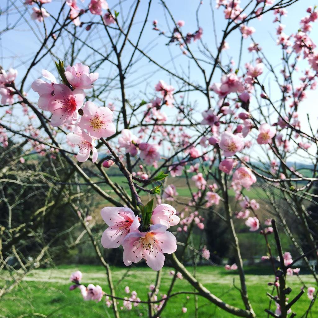 Sur cette photo, vous pouvez constater que les pêchers se mettent eux aussi au rose : Laetare Jerusalem !
